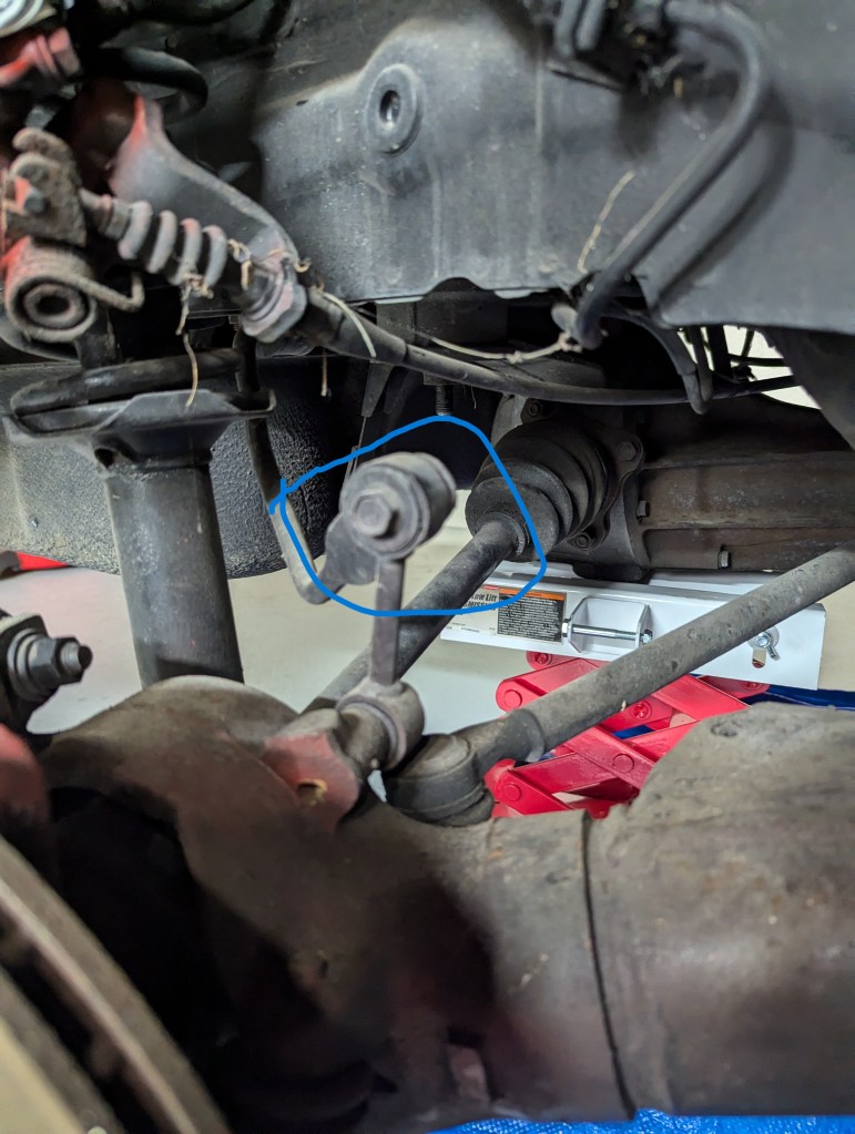 Next, remove the sway bar end links with a 14mm socket and 14mm wrench (nut and bolt kinda thing) on each side. While you’re there, go ahead and remove the rear struts from the hub with a 17mm socket.