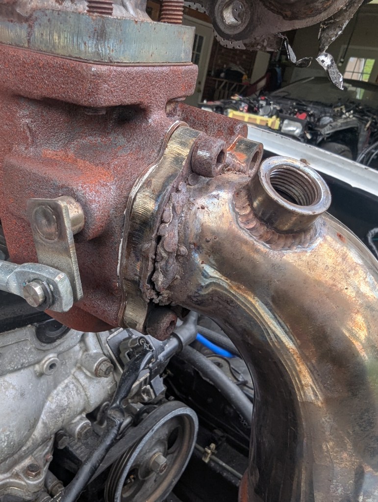 Suspension wise, it has some Raceland coilovers and Godspeed arms up front. Not the best but surprisingly get the job done. The biggest issue I’ve seen was with the exhaust system. The turbo elbow had the most cancerous looking welds I have ever seen. There were cracks and leaks all through the downpipe. It was bad. Here’s some pictures but view at your own risk. Its brutal.